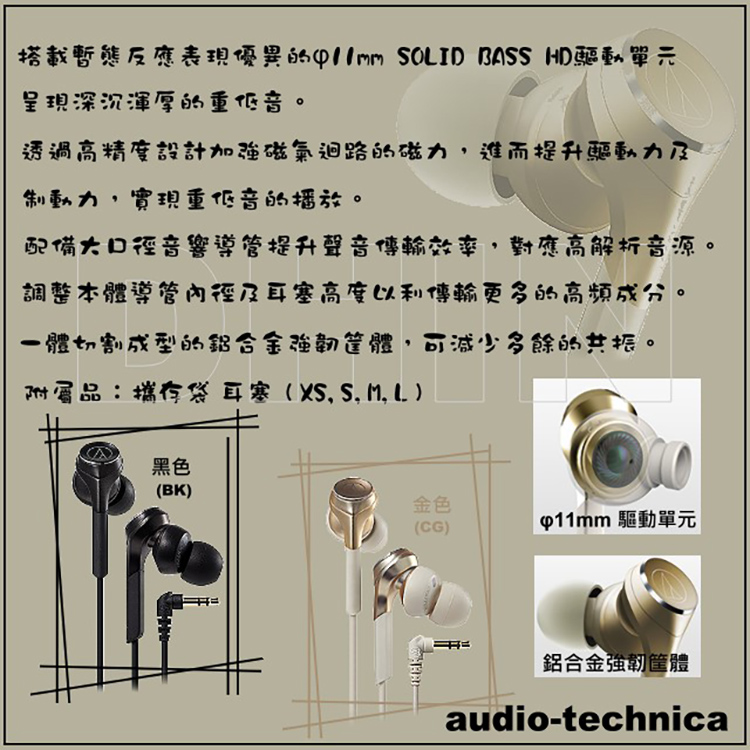 ◆ 搭載暫態反應表現優異的Ø11mm SOLID BASS HD驅動單元,可呈現深沉渾厚的重低音。
