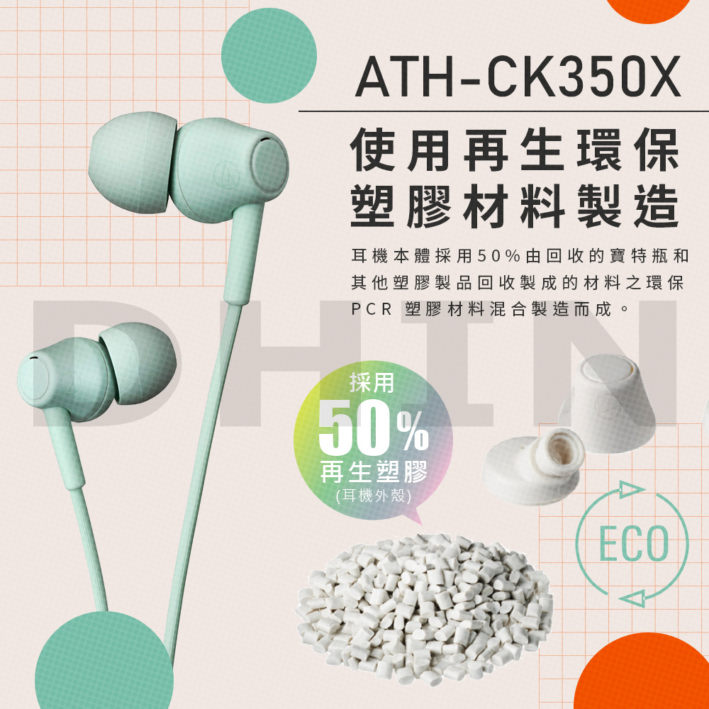 耳機本體採用50%的環保PCR(Post-Consumer Resin) 回收再生塑膠材料*混合製造而成。