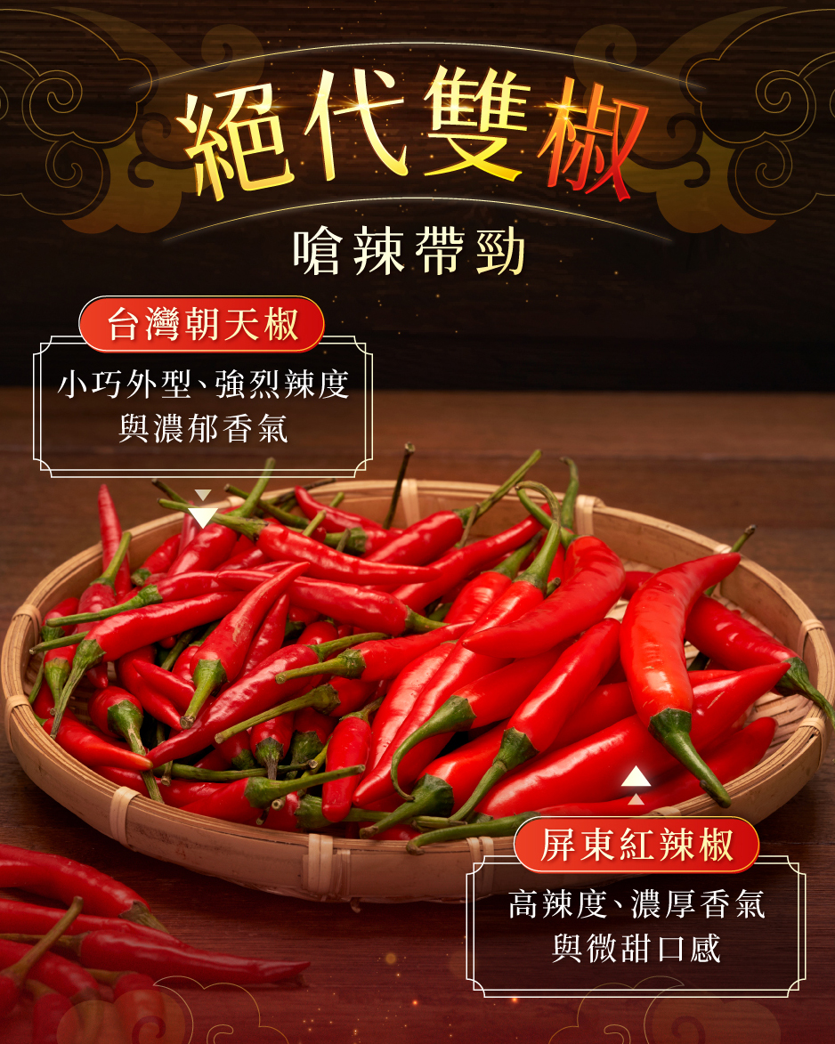 成份:朝天椒、紅辣椒、蒜頭、 鎮江醋(水,醋原料,糖,八角,鹽)、檸檬酸、手工醬油(黑豆,水,鹽,糖)、二號砂糖(蔗糖)、鹽