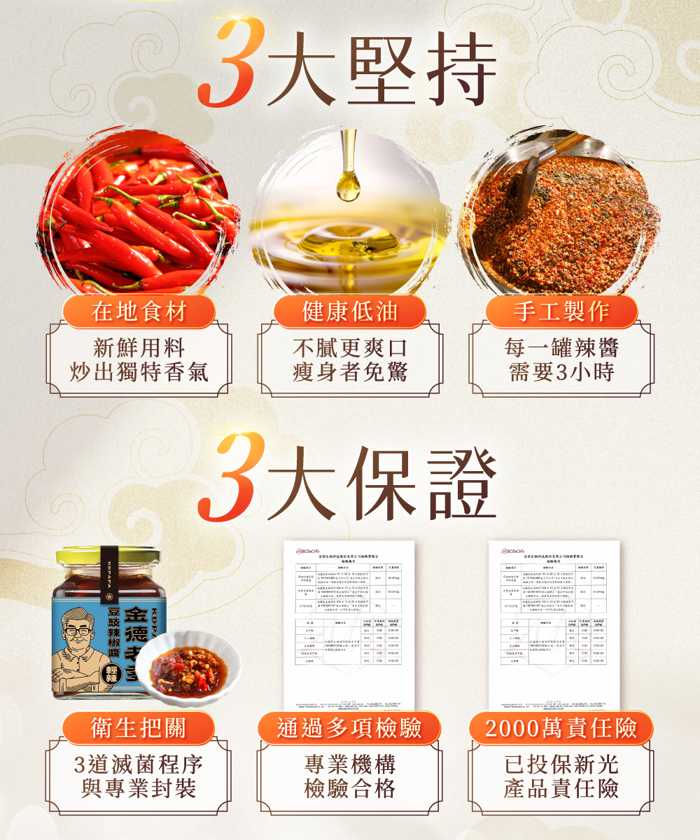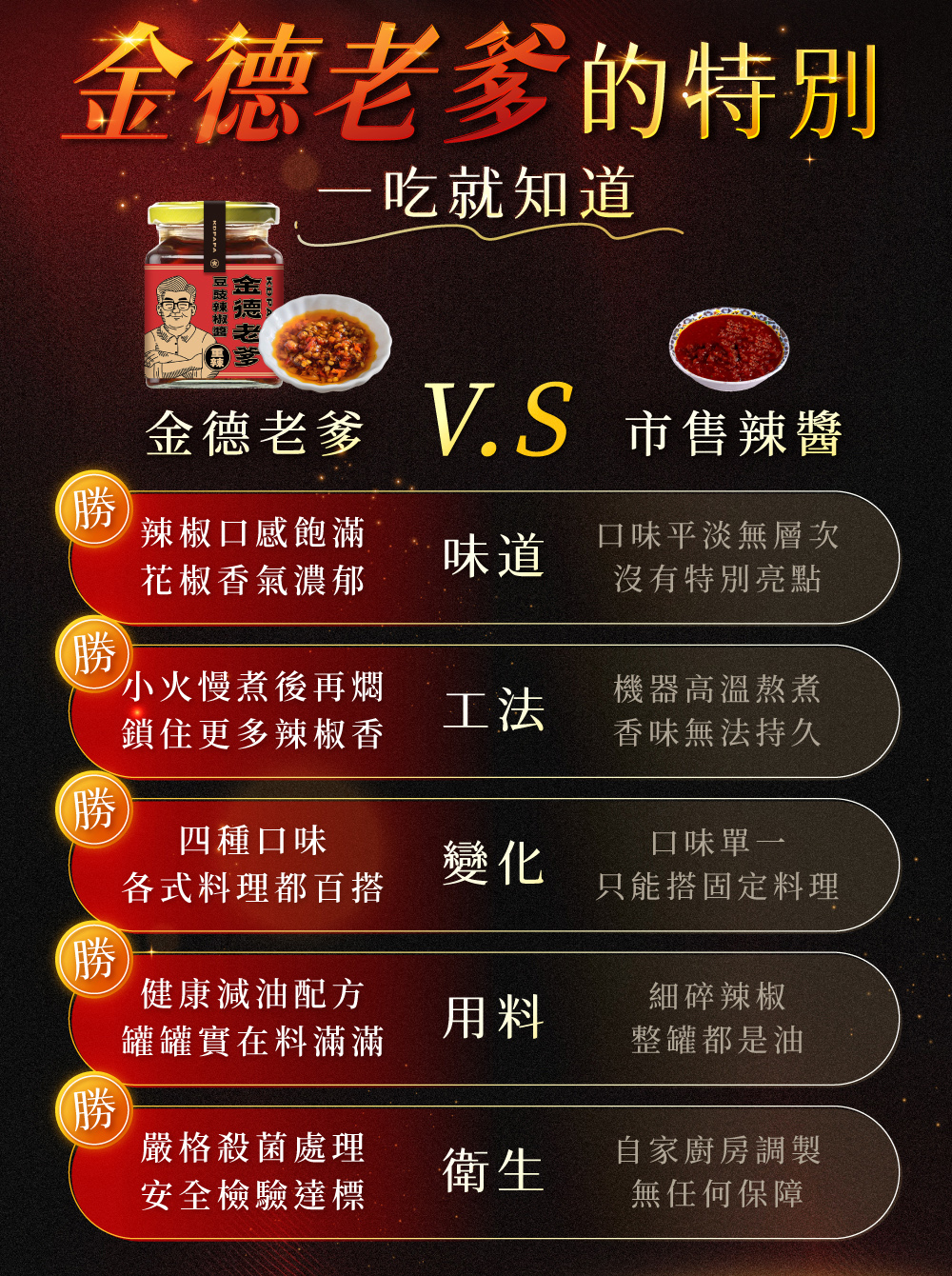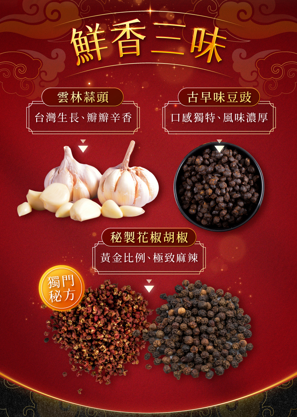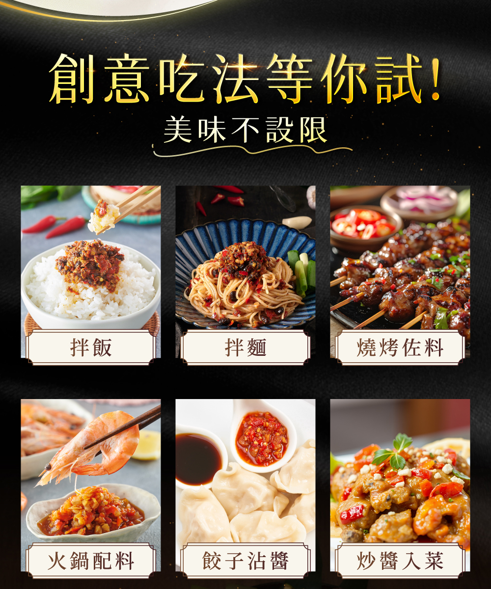 🚩商品成分:朝天椒,蒜頭,大豆沙拉油,黑豆豉,蒜酥,花椒粉,胡椒粉,冰糖,鹽