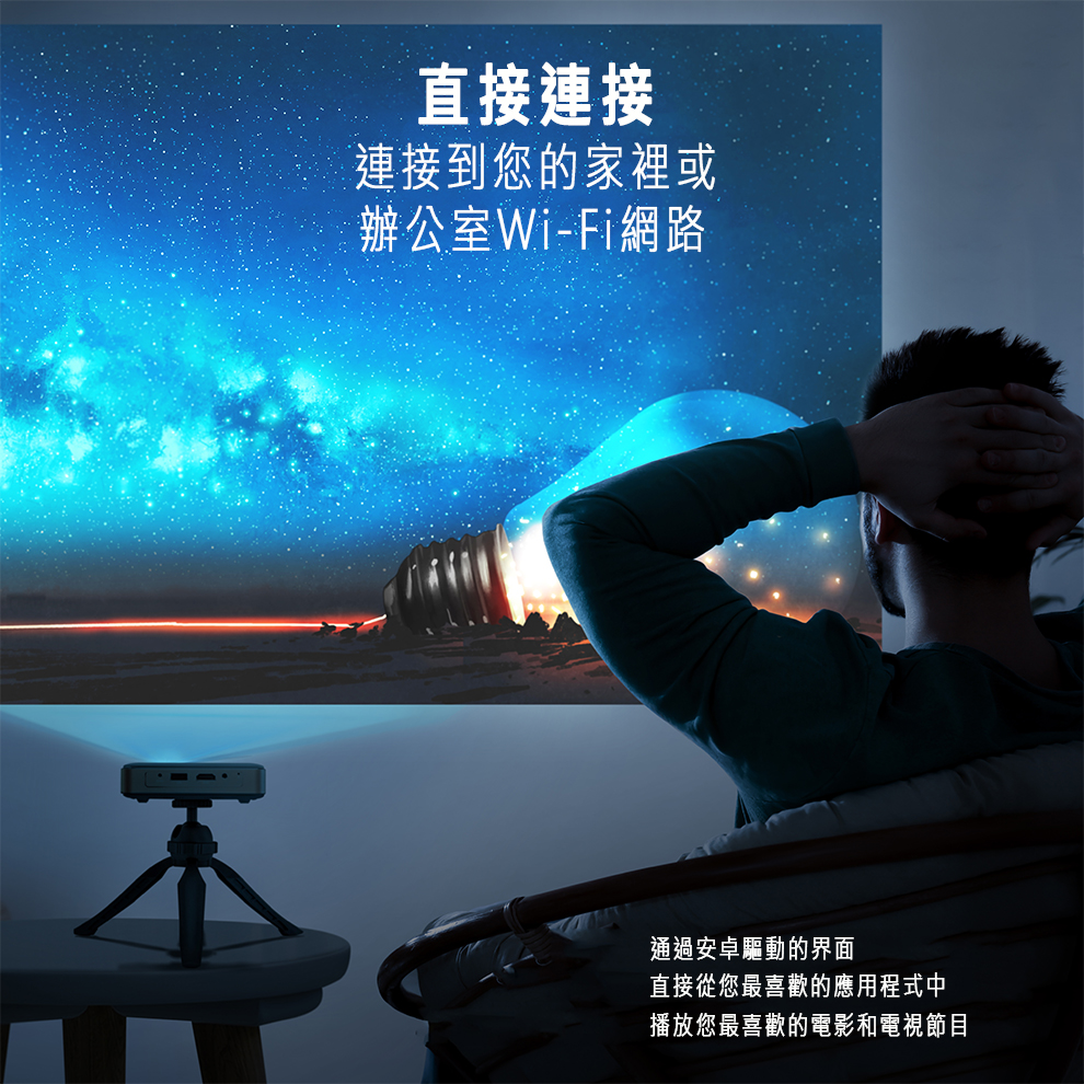 內容物:投影機*1、桌面三腳架*1、直流適配器*1、遙控器*1、HDMI線*1、充電線*1、中文說明書*1、AAA 4號鹼性電池*2