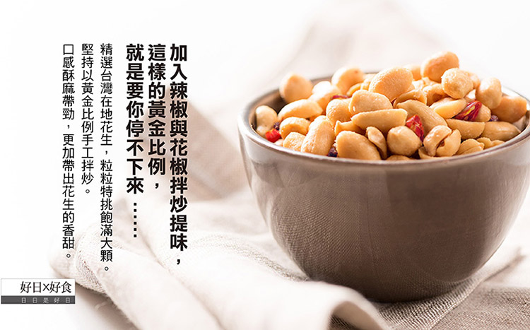 主成分:花生仁、鹽、香辛調味料、辣椒、花椒、棕櫚油