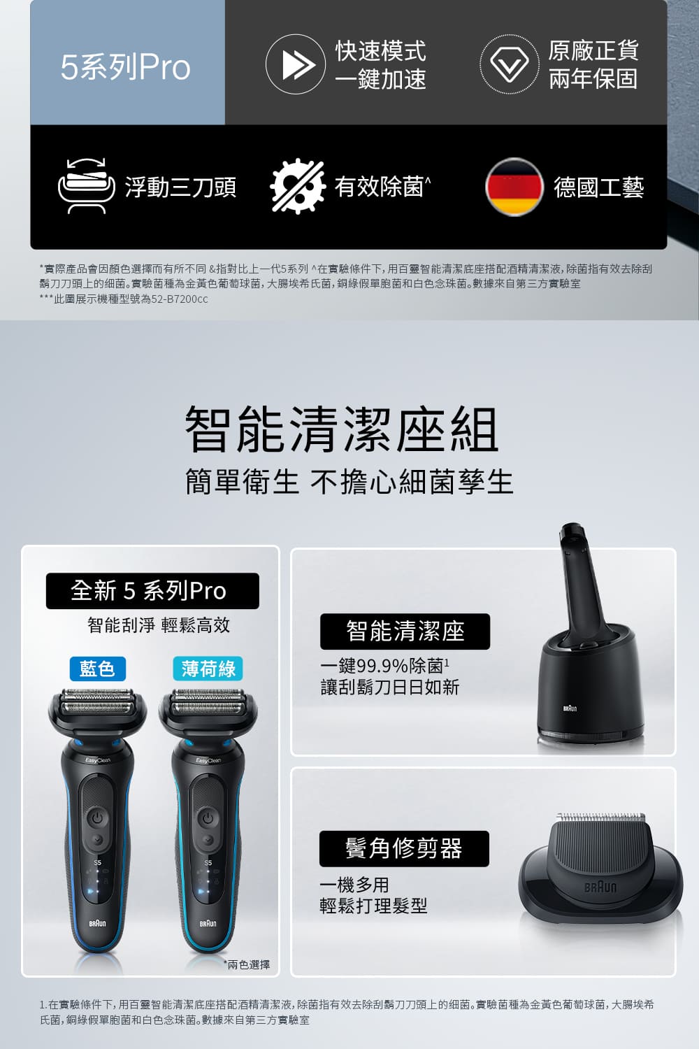 品名:BRAUN 5系Pro免拆快洗電鬍刀 52-M7500cc