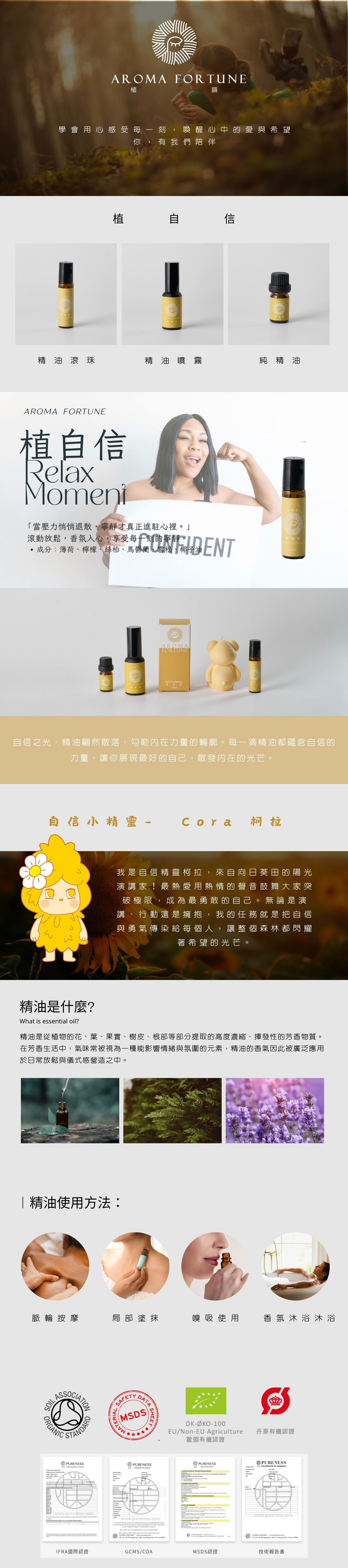 自信是通向成功最為璀璨的那把鑰匙,植自信精油透過大自然的陽光香氣,